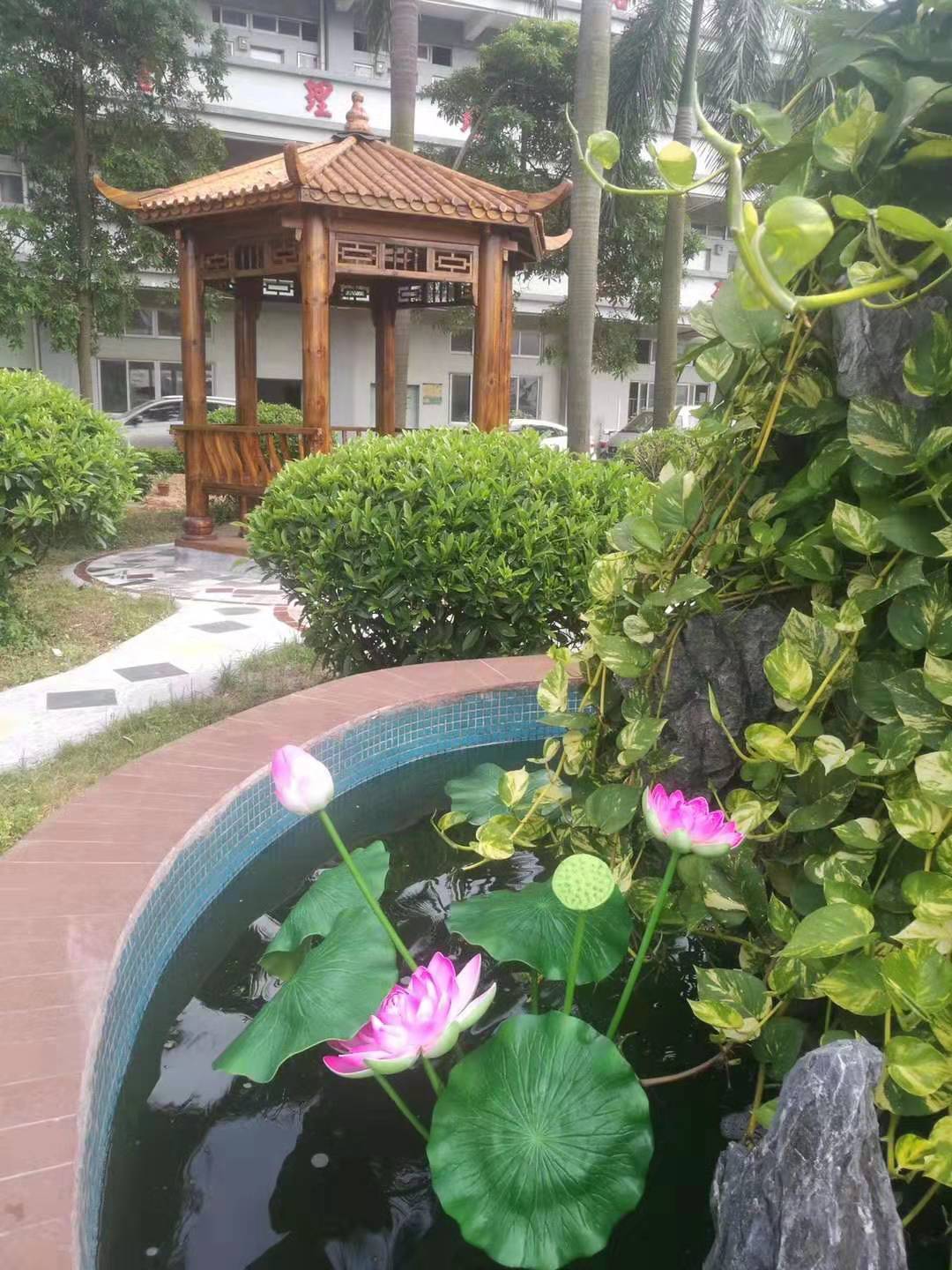昶丰领导为了职员下班有个更好的休闲区。在工厂绿化景中,开始建造一个六角凉亭。在2019年5月25日厂区绿化中的休闲亭已完美的收工。